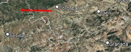 As shown in the right picture, this fireball happened above Córdoba and Seville provinces in south Spain.