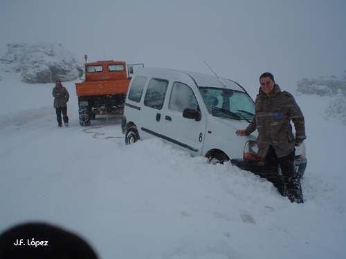 Menos mal que nuestro quita-nieves es 4x4 y tiene una potencia descomunal para tirar de los coches...